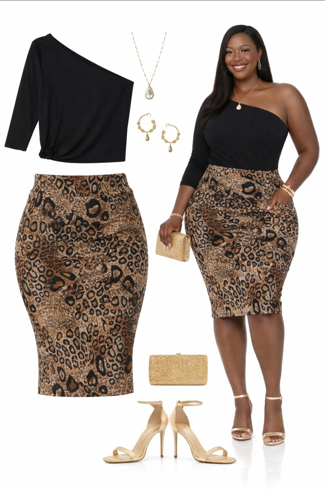 👠 Style Tip: Tuck in a neutral blouse or sweater and finish with gold accessories and heels for that “rich auntie” energy.
